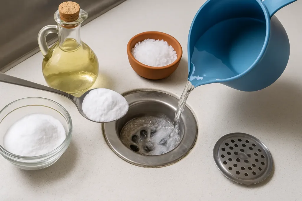 - Para pias, a mistura de bicarbonato de sódio com vinagre é uma alternativa mais segura.